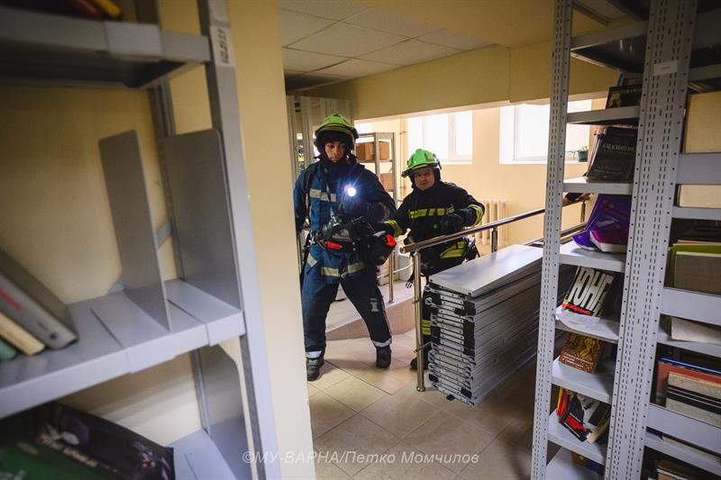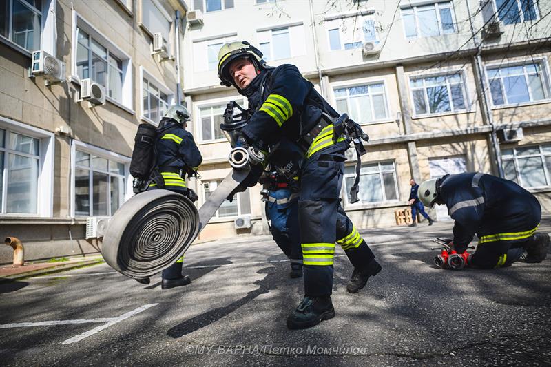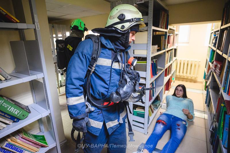 Практическо учение за евакуация при пожар и спасяване на хора се проведе в сграда Ректорат на Медицински университет – Варна. То бе предшествано от тридневни теоретични занятия на тема „Организация и управление на инциденти с голям брой пострадали“ - задължителен модул за обучение на стажант-лекари.