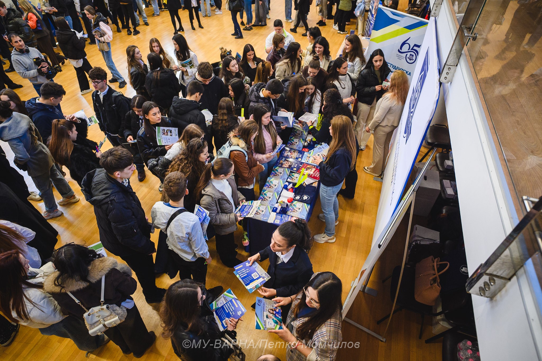 Представители на Медицински университет „Проф. д-р Параскев Стоянов“ – Варна взеха активно участие в традиционното изложение за кандидат-студенти, организирано от Община Варна и Центъра за кариерно развитие. Форумът, който ежегодно събира бъдещи зрелостници, родители и преподаватели от целия регион, отново се превърна в платформа за пряк диалог между висшето училище и потенциалните кандидати.