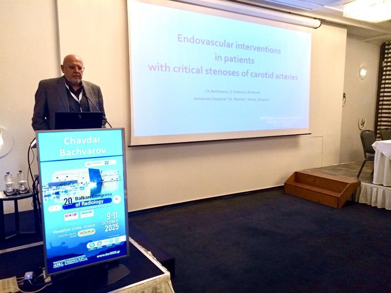 Доц. д-р Чавдар Бъчваров – Ръководител на Клиниката по образна диагностика към УМБАЛ „Св. Марина“ – Варна и Ръководител на Катедрата по образна диагностика, интервенционална рентгенология в МУ-Варна, взе участие като лектор в юбилейния ХХ Балкански конгрес по рентгенология, който се проведе в периода 9–12 октомври 2025 г. в Хераклион, Крит. Той изнесе научна лекция на тема: „Ендоваскуларни интервенции при пациенти с критични стенози на каротидни артерии и контралатерална тотална каротидна оклузия.“