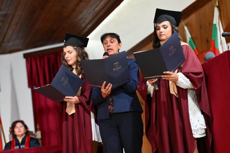 Ректорът поздрави абсолвентите за тяхната упоритост и отдаденост в усвояването на знания. „Бъдете всеотдайни професионалисти, които печелят доверие и признателност. Бъдете търпеливи и добри хора. Не спирайте да се развивате и да учите, за да бъдете в крак с времето“, обърна се към тях проф. Райков.
