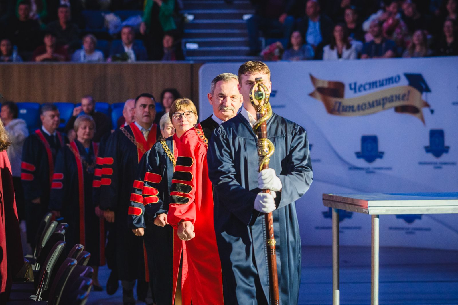 450 абсолвенти от Випуск 2025 на Факултета по обществено здравеопазване получиха дипломите си от Медицински университет – Варна на тържествена церемония в Двореца на културата и спорта. С отличен успех тази година се дипломираха 167 абсолвенти. Първенец на випуска е Теодора Ташева от специалност „Логопедия“, ОКС „бакалавър“, която завърши с пълно отличие от цялото обучение и държавните изпити.