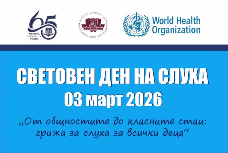 За пета поредна година Медицински университет – Варна ще се включи в отбелязването на Световния ден на слуха 3 март с безплатни профилактични прегледи за нарушения на слуха. Тази година те ще преминат под мотото: „От общностите до класните стаи:
