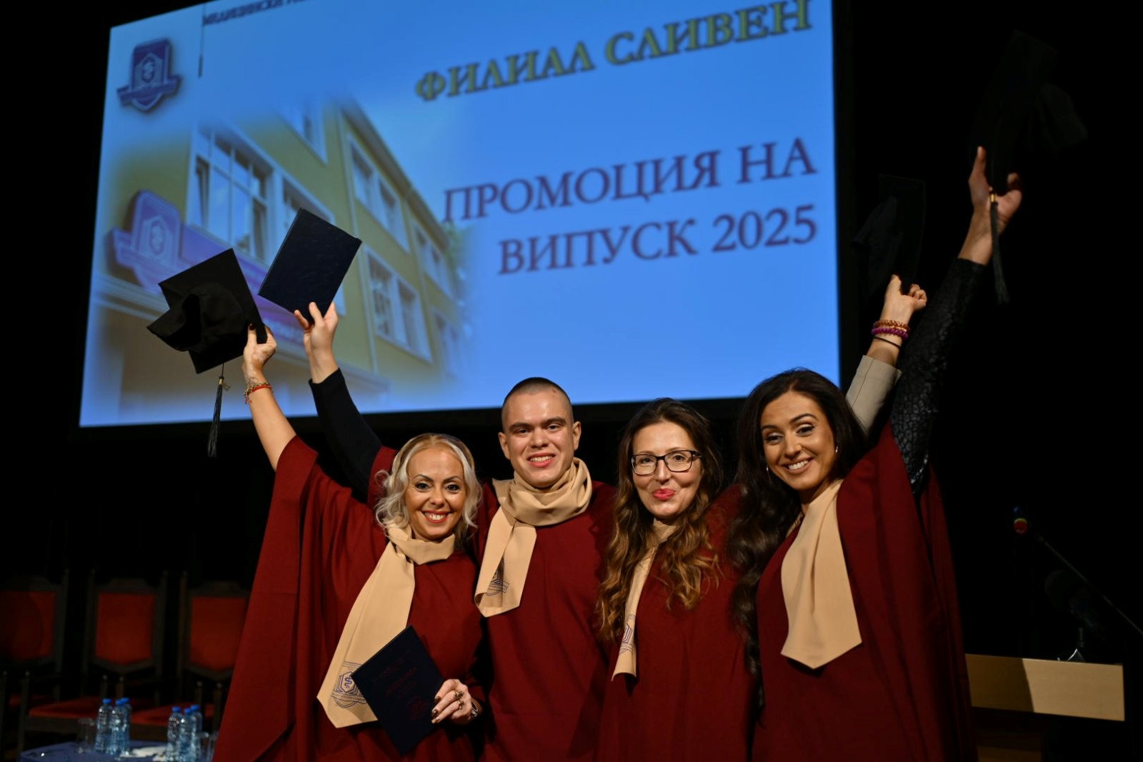 Първенец на Випуск 2025 е Велина Митева, специалност „Медицинска сестра“, удостоена с парична награда, плакет и грамота от ректора на МУ–Варна и с парична награда от кмета на Сливен. С най-висок успех сред завършващите специалност „Акушерка“ е Ана Ангелова, която също получи отличия.