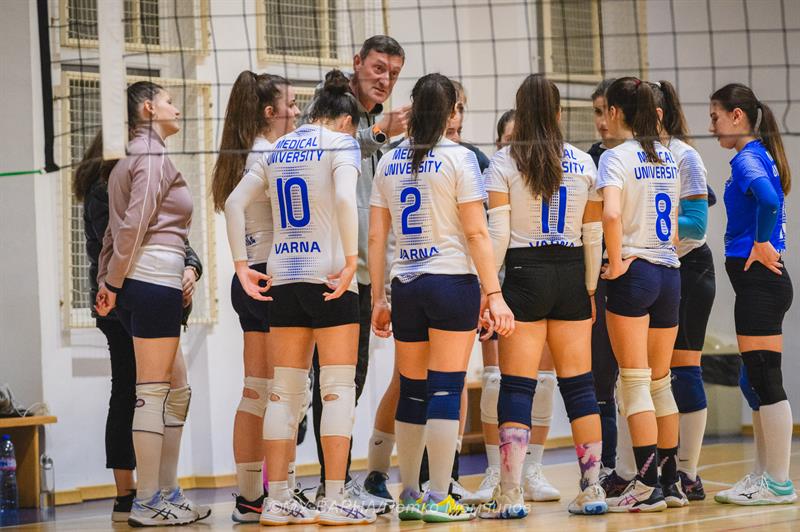 The women’s volleyball team of MU-Varna got off to a flying start in the “8th of December” Cup tournament. Our players convincingly won their match 3:0 against the team of UE-Varna. The match was played at the sports complex of MU-Varna.