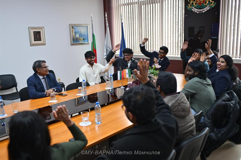 As part of his visit, His Excellency met with Indian students studying Medicine, who shared their impressions of Varna and their studies at the Medical University.