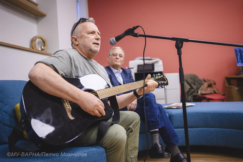 Prof. Platikanov joined in with his guitar singing several favourite poems from the book.