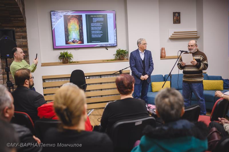 Assoc. Prof. Dr. Dobrin Paskalev, a specialist in Internal Medicine and Nephrology and lecturer at Medical University - Varna, has been nominated for the Varna Award 2025, Literature section, for his talented new poetry book “At the Hidden Altar of the Words" (“Na dumite pred skritiya oltar"). The proposal of the Association of Writers in the Sea Capital was made during the presentation of the poetry book in the Library of Medical University.