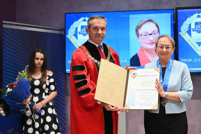 Prof. Dr. Bistra Kalcheva, PhD – for enhancing the prestige of MU-Varna in the research and project activities; for significant contributions to the educational and expertise activities; for merits to the development of the Faculty of Pharmacy.